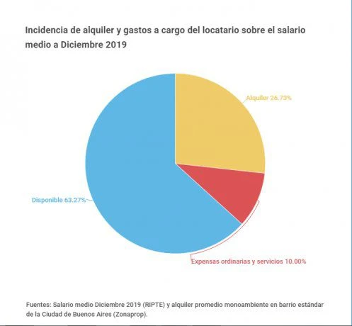 Si se toma como referencia Diciembre 2019, el salario medio ascendía a $ 41.147, según Ripte. Por su parte, un monoambiente en un barrio estándar de la Ciudad promediaba los $11.000.